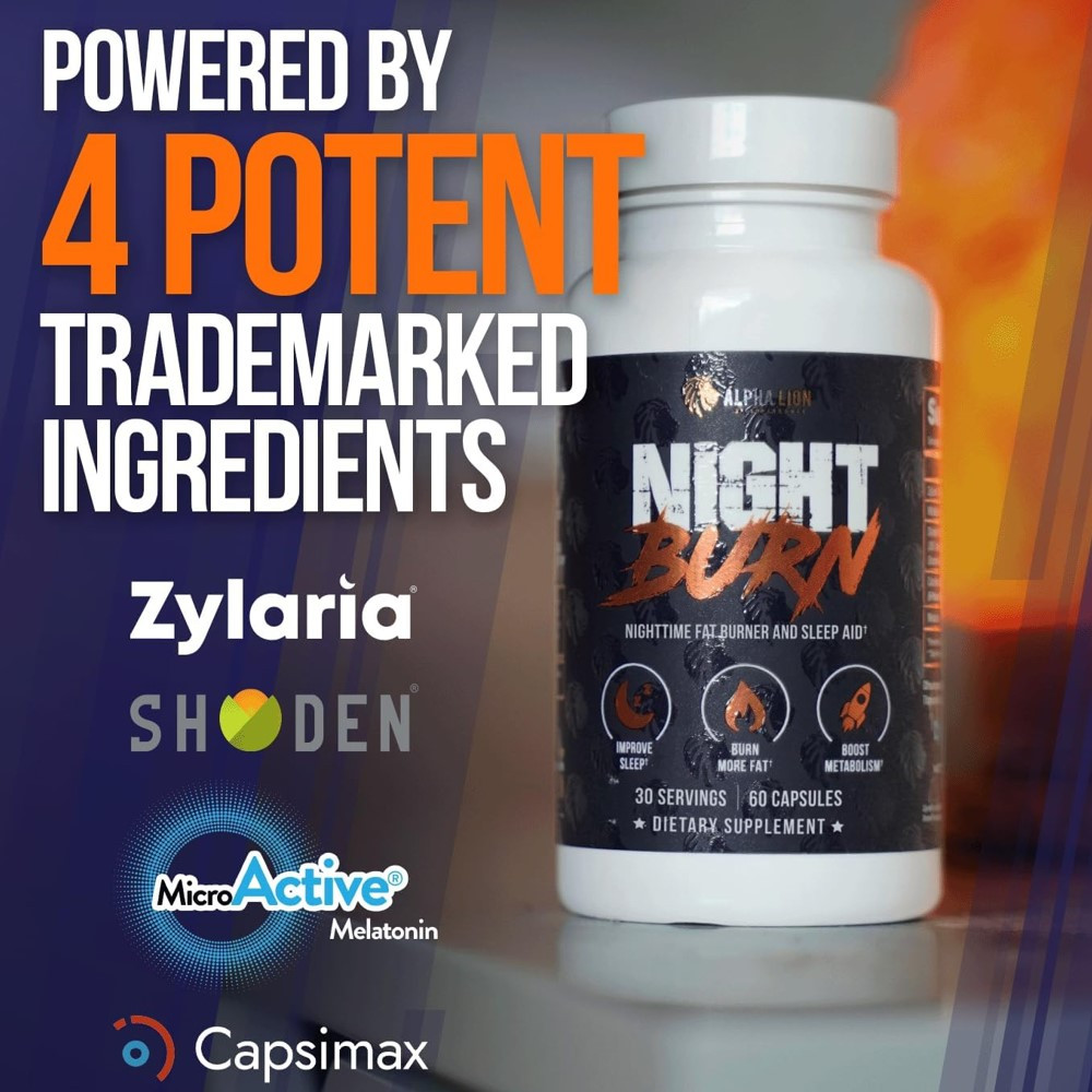 Alpha Lion Night Burn Capsules are dietary supplements formulated to support nighttime fat burning, metabolism, and recovery. This advanced formula works while you sleep to help the body use stored fat for energy, support appetite control, and promote better sleep quality for overall weight management.
