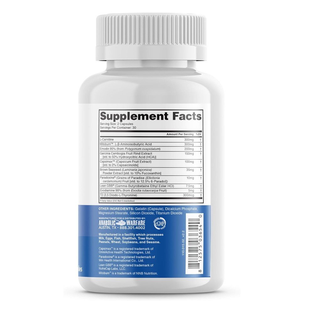 Anabolic Warfare Phena-Lean Capsules are dietary supplements formulated to support fat burning, metabolism, and energy. The advanced formula is designed to help the body use stored fat for energy, improve workout performance, and support weight management when combined with a balanced diet and active lifestyle.