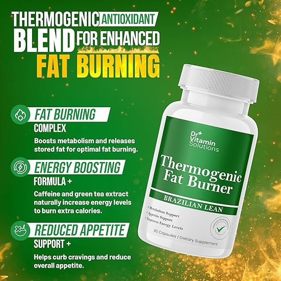 Dr Vitamin Solutions Thermogenic Fat Burner Capsules is a dietary supplement formulated to support weight management. It is designed to help enhance metabolism, support fat burning, boost energy levels, and assist with appetite control when used alongside a balanced diet and regular physical activity.