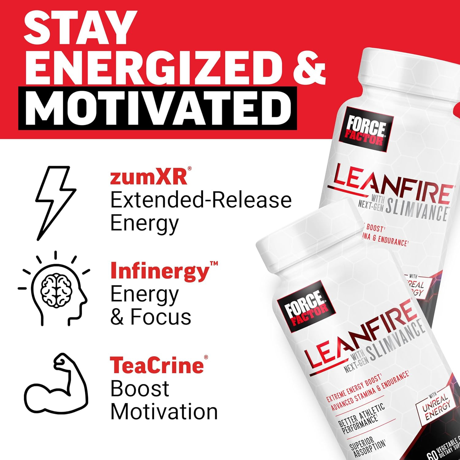 Force Factor LeanFire with Next-Gen SLIMVANCE Capsules are dietary supplements formulated to support weight management and fat burning. These capsules are designed to help enhance metabolic activity, increase energy levels, and support appetite control when used alongside a balanced diet and regular physical activity.
