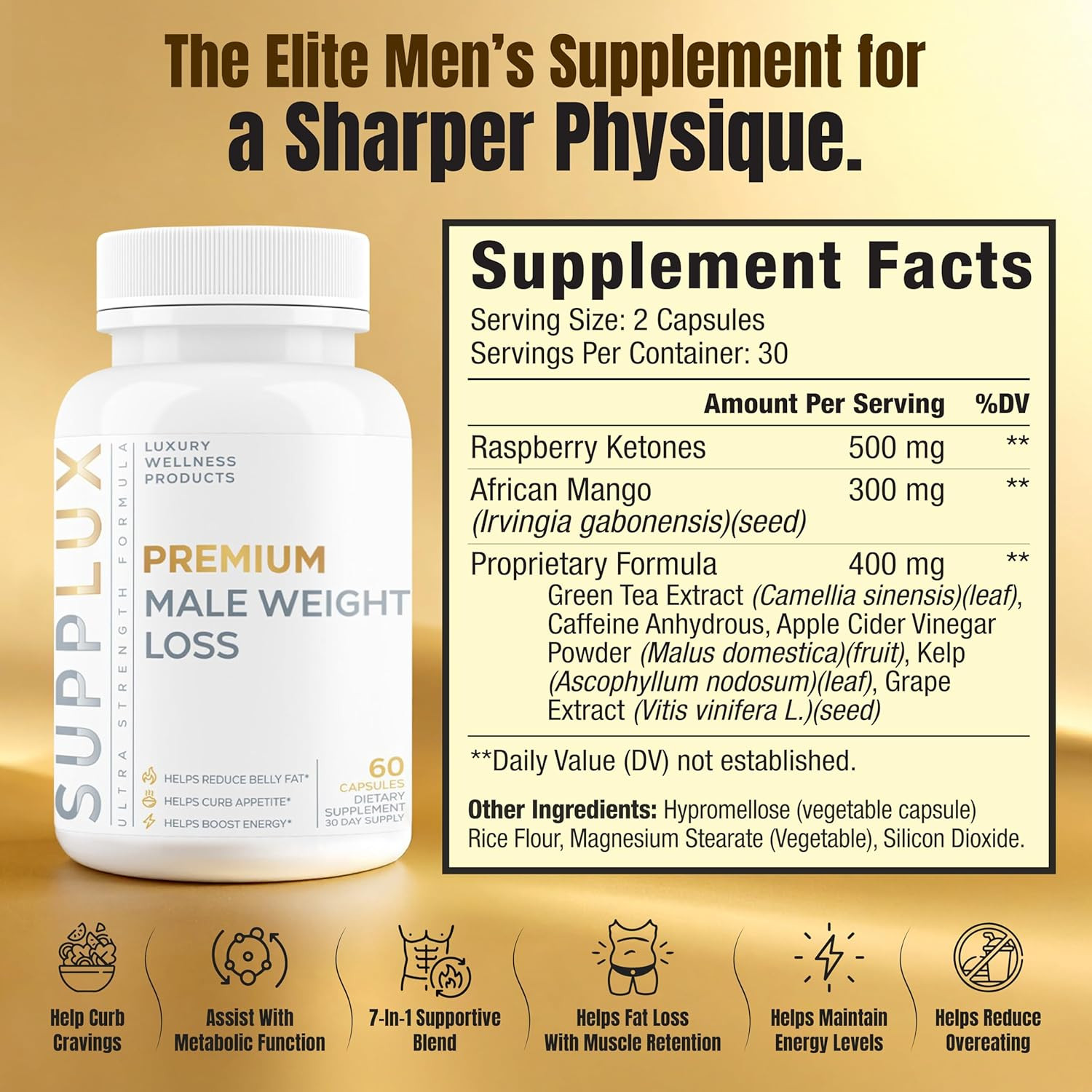 Premium Male Weight Loss Capsules are a dietary supplement formulated specifically to support weight management for men. They are designed to help boost metabolism, support fat burning, increase energy levels, and assist with appetite control when used alongside a balanced diet and regular physical activity.